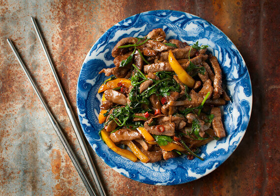 This recipe comes from Hank Shaw of http://honest-food.net/. Consider this a master recipe for any stir-fry you might want to throw together on a Wednesday night.