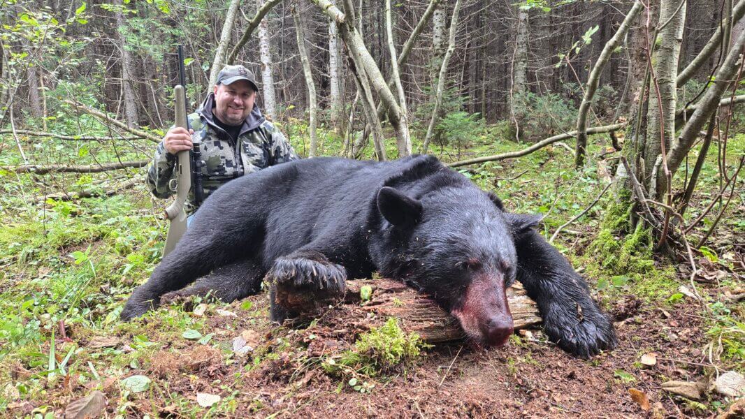 Bear hunter success rates are above average at 80% for bait hunts with nearly 100% on hound hunts. Bear sizes range from 5.5 feet to occasionally exceeding 7 feet. Bears sizes are on average 175 pounds on bait, and 300 pounds with hounds. All clients are bear hunting overactive bear baits. Trail cameras are utilized by bear guides to enhance success. Private channel, 5-watt, 2-way radios for direct communication with your bear guide. Bear guides have 50-watt radios in their vehicles. No needlessly long waits in your bear stand.