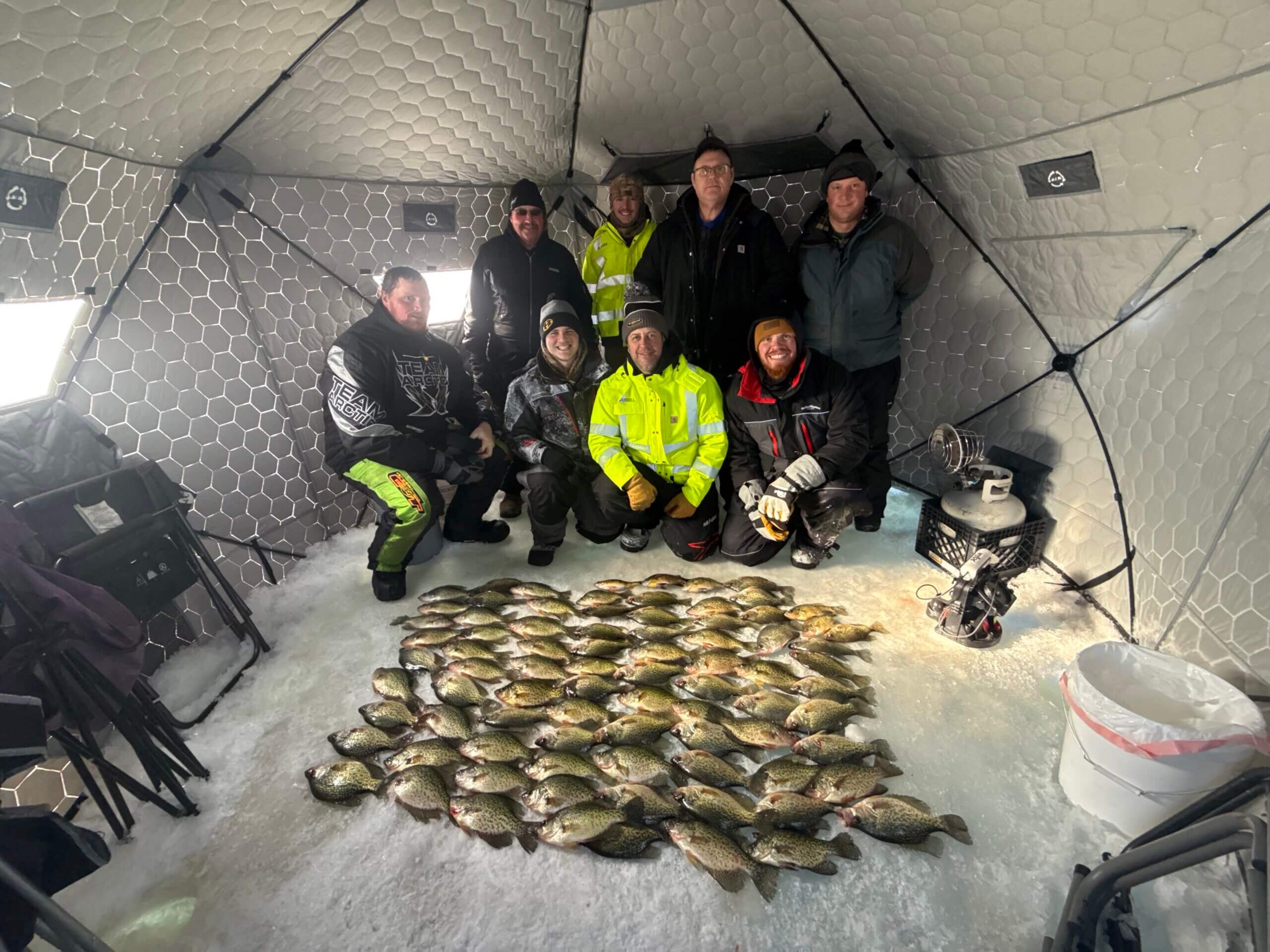 After a day on the ice, relaxation awaits in the outfitter’s beautifully crafted 5,500-square-foot lodge. The lodge offers a cozy, home-like atmosphere where guests can indulge in home-cooked meals, savor appetizers, and enjoy the camaraderie of a traditional fish fry, making the entire experience unforgettable. Since the outfitter restricts the number of groups they host each year, early bookings are essential to secure a spot at this world-class ice-fishing destination.