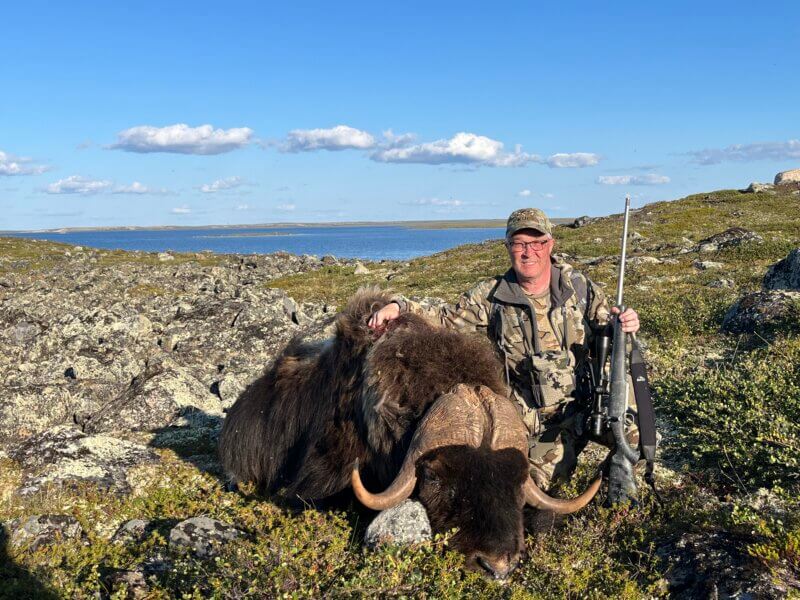 Hunt trophy mainland muskox in the far northern reaches of the province of Nunavut with one the most seasoned outfitters in the North Country. All hunts are fully guided by experienced native guides. Cabin accommodations are provided by the welcoming communities and local meals are served daily. This is a land without fences where animals haven’t heard the sound of gunfire. These hunts have been nearly 100% successful over the years with all weapons. Both spring and fall hunts are offered. Spring hunts are conducted March–April. Hunters are transported on a sled pulled by snowmobile. This provides superb mobility and allows you to see lots of game. The spring days are long and the temperatures are comfortable. Fall hunts are August–September and hunters are transported with ATV. The terrain is rough so hunters need to be mentally and physically prepared. During Fall hunts you may combine muskox, wolf, and caribou to make the perfect combination hunt.