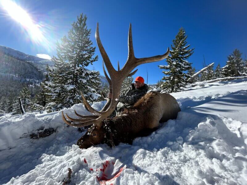 Prepare yourself for both a mental and physical challenge. This breathtakingly beautiful, yet rugged, terrain ranges in elevation from 8,000 to 9,500 feet. Archers (crossbows are legal during WY archery seasons)Â will be pursuing resident bulls that summer in the pristine high-country, utilizing a combination of glassing, calling, and spot-and-stalk techniques. For rifle hunters, we focus on the final two weeks of October when winter begins to settle over Northwest Wyoming. As the temperatures drop and snow starts to fly, the elk begin their historic migration out of the park and onto their winter range. Rifle hunters can expect to spend a lot of time glassing and riding horses, all in search of the bull of a lifetime. Regardless of your weapon choice, the outfitter focuses on bulls in the 330+ class.